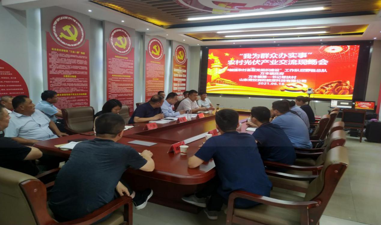 6月16日,山東菏投潤和能源科技有限公司副總經理崔巍、張培永前往巨野縣萬豐鎮鎮政府與“加強農業基層黨組織建設工作隊”巨野縣總隊副總隊長閆建群、唐亮,萬豐鎮政府相關負責人,各村鎮省派市派第一書記、幫扶村負責人等展開座談會,圍繞“我為群眾辦實事”農村光伏產業展開深入交流,并實地查看巨野縣新農村建設情況。